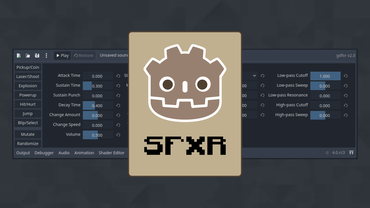 A Godot plugin that ports sfxr, the popular program of choice to make retro sound effects for games. You can use sfxr sound files like regular audio files in Godot and edit sound files like in the original sfxr