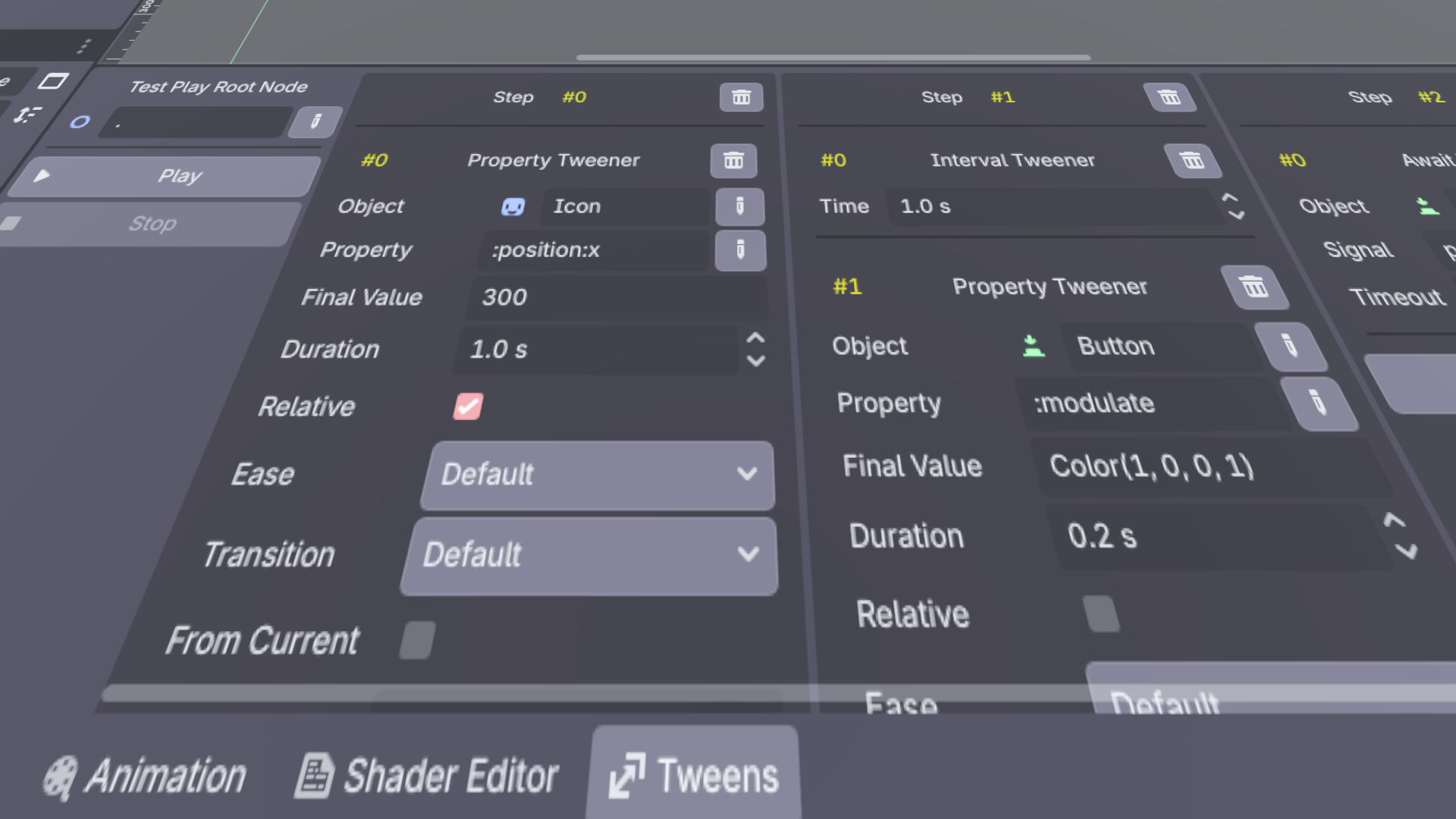 Tween Suite is an extension for Godot's Tween class. It adds 3 things: TweenNode, TweenAnimation, editor for TweenAnimation. TweenNode A wrapper for Tween. You can put it on the scene and edit some animation parameters in the inspector. All of the