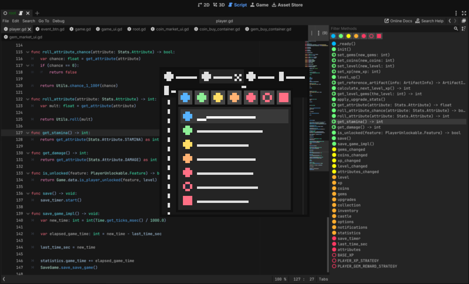 Transforms the Script UI into an IDE like UI. Multiline Tabs are used for navigating between scripts. Tab can be split. The default Outline got an overhaul and now shows all members of the script (not just methods) with unique icons for faster navigation
