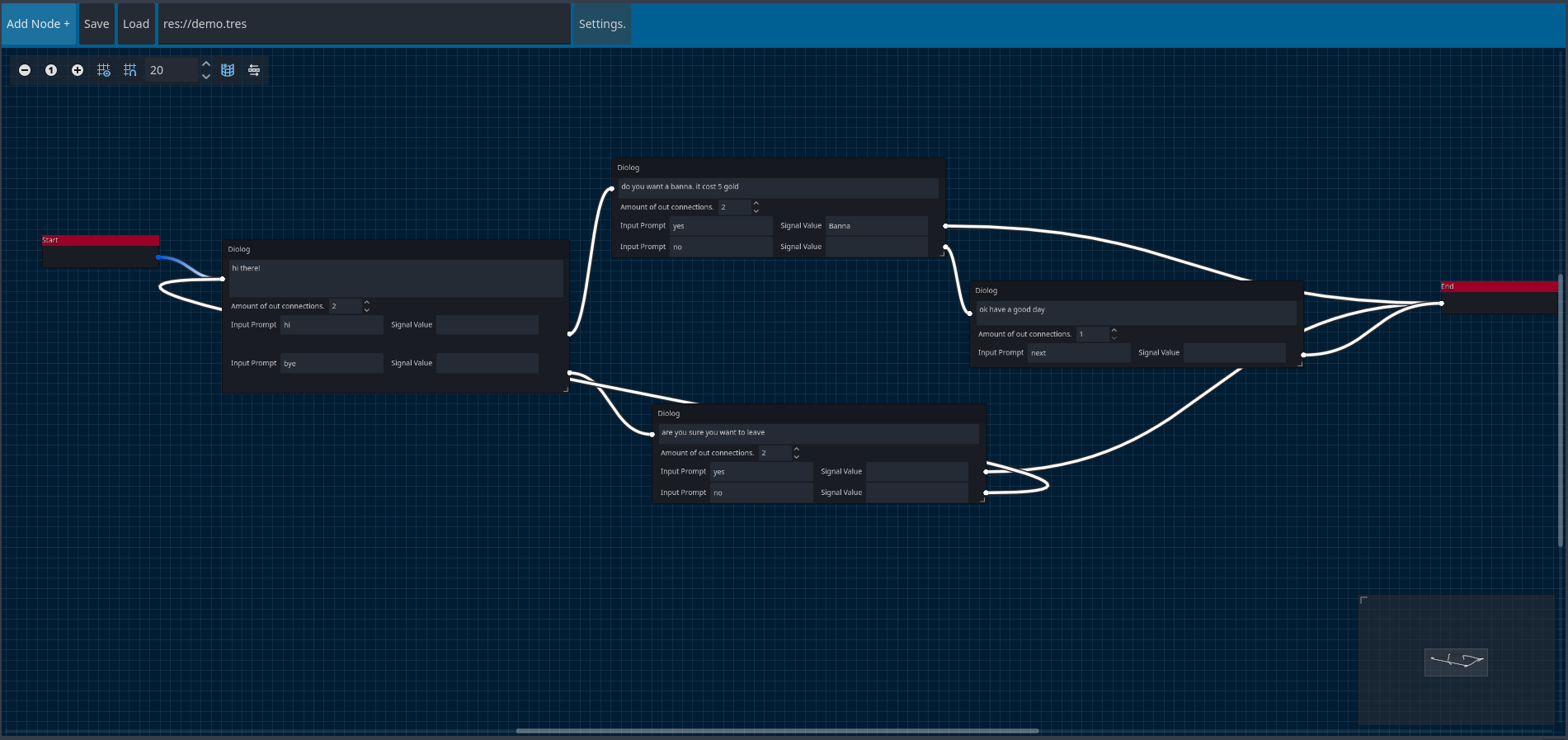 Sprouty dialogs is a graph-based visual dialogue system plugin for Godot 4.5+, that provides an easy-to-use, customizable and extensible way to create dialogues for your games. Features Graph-based visual interface to create your dialogues in an easy and