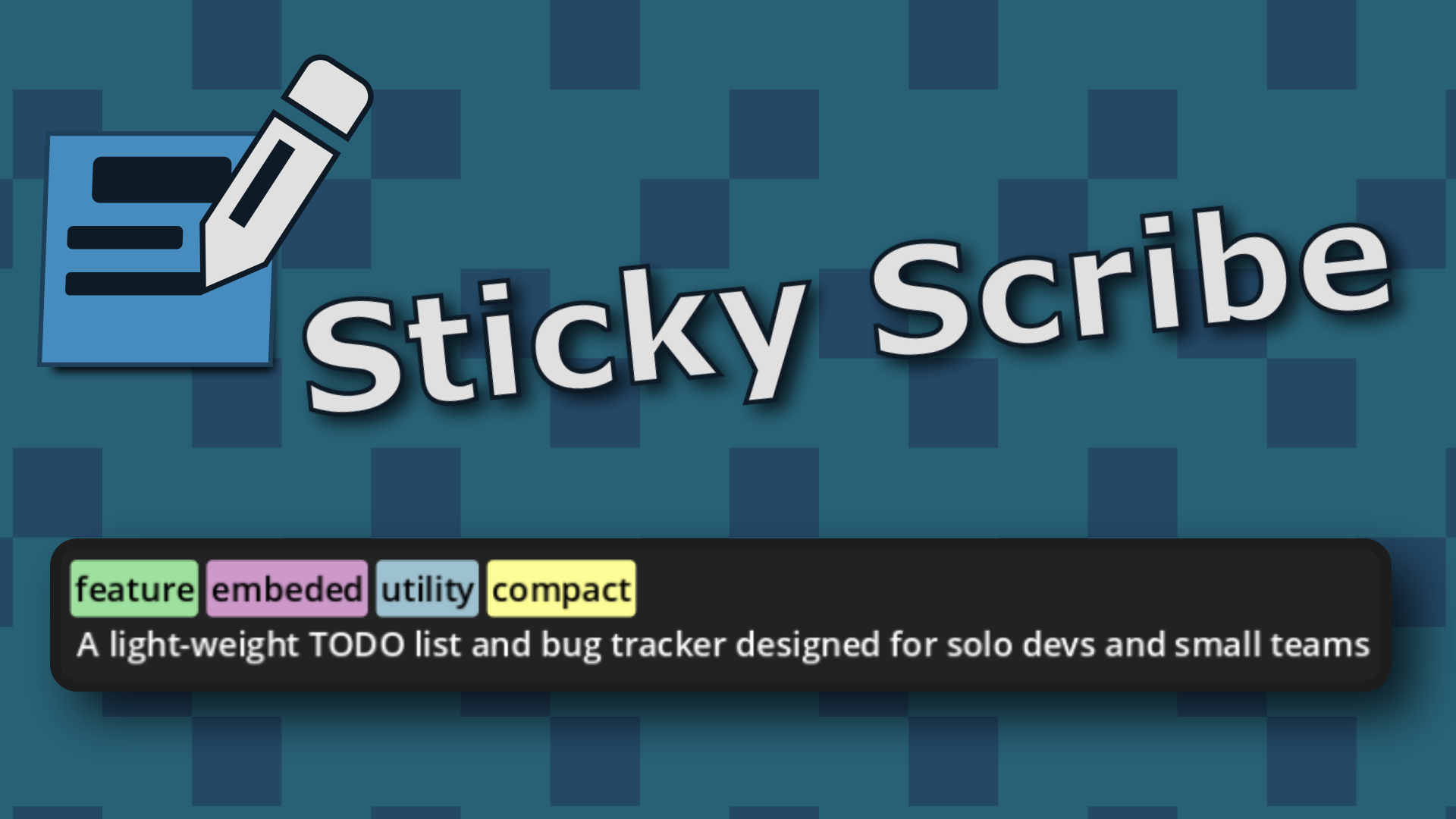 What is Sticky Scribe? Sticky Scribe is a light-weight TODO list and bug tracker, designed for solo devs and small teams. It integrates directly into Godot, and maintains a text list of "Stickies" in your project directory that is designed to be checked