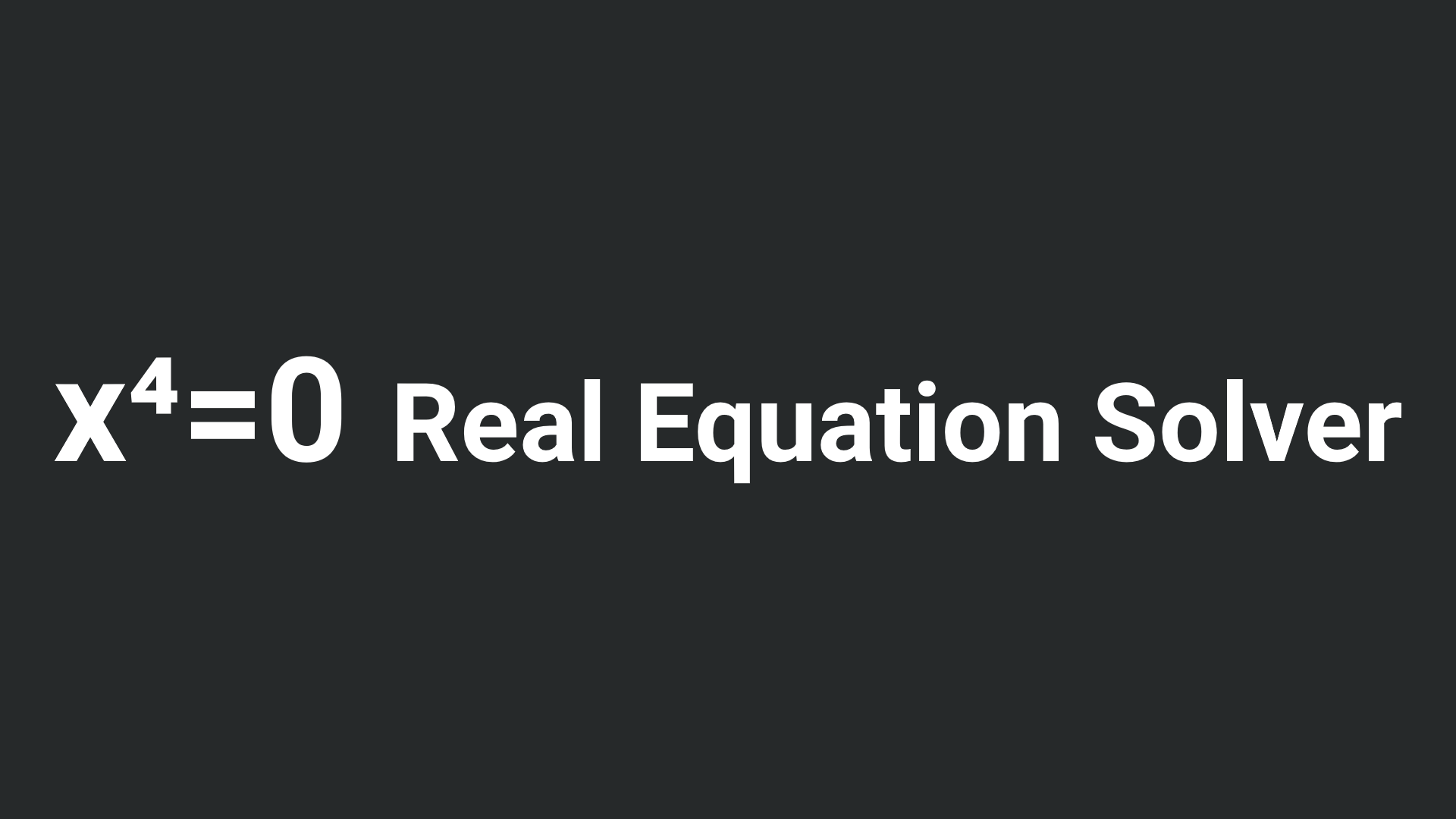 Real Equation Solver Equation solver and generator for real-valued polynomial equations up to 4th degree. Table of Content Download Example Reference Contributing Download Asset Store Asset Library GitHub Example func example() -> void: print(ResSolver