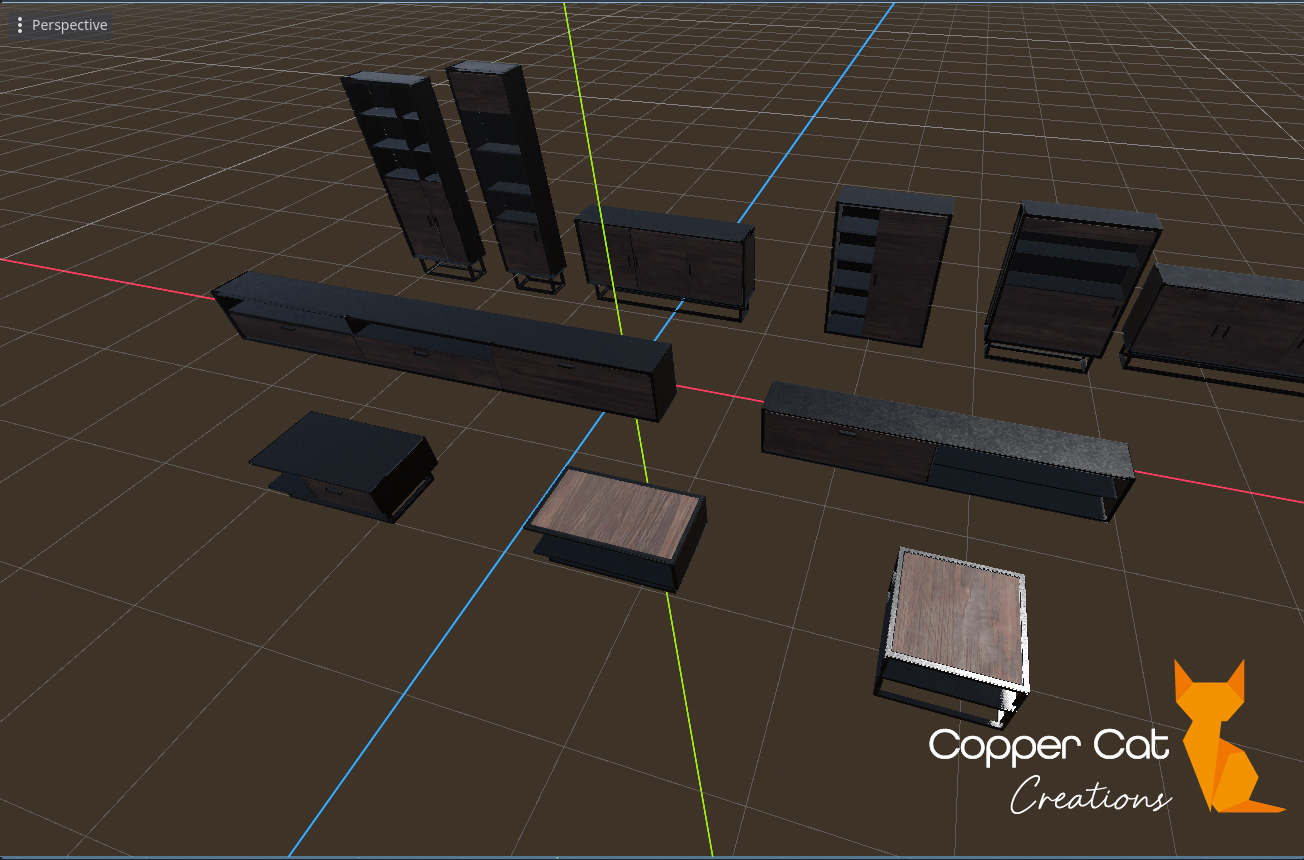 The pack includes: 11 models: 4x Sideboards, 2x Highboards, 2x TV-Boards, 3xTV-Tables Specifications: Tris: 196 - 996 Materials: 1 Textures: 4 Texture Resolution: 4096x4096 Texture Maps: Diffuse, Ambient Occlusion, Normal, Roughness