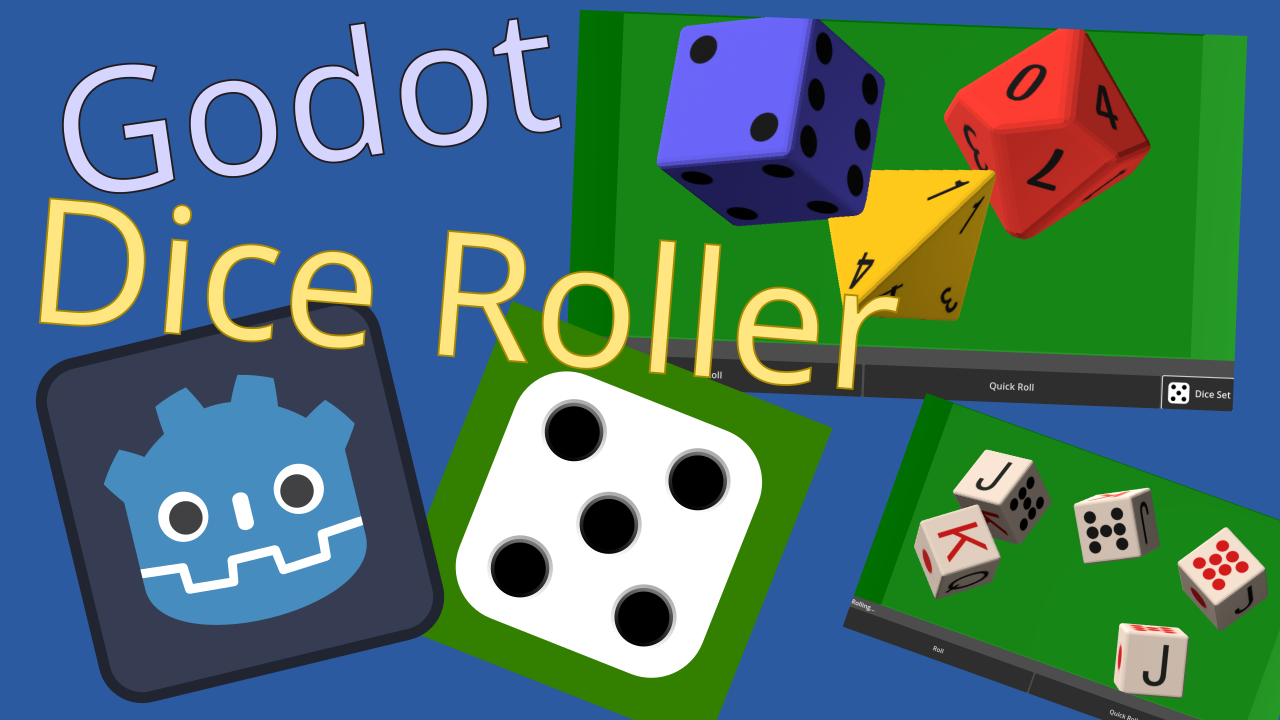 A Godot UI control that rolls 3D dices in a box. Features Configurable setup: Dynamic set of dices including d4, d6, d8, d10, d10x10, d12, d20 Easy dice customization (color, shapes, engraving, material...) Configurable rolling box size and color 3 ways